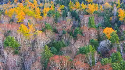 There is also a beekeeping base deep in the dense forest - surrounded by colorful trees, with beehives scattered around. The base looks neat and tidy from a close distance, and the forest is continuous from a distance, with full layers of autumn colors.