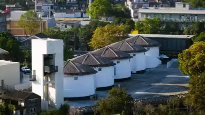 Go to the Pioneer World Granary Bookstore, which consists of five yurt-shaped granaries and a glass coffee house. It was once a barn where residents of Tangkou Town, Kaiping, stored grain in the 1970s.