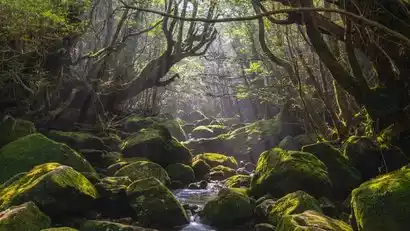 This tranquil forest is blanketed in rich green groundcover, including precious ferns and mosses. The intergrowth of Yakusugi and safflower creates a mysterious and enchanting dreamworld. Kazuo Oga, lead artist for the anime "Princess Mononoke," drew inspiration from the park's ancient trees and moss-covered rocks.