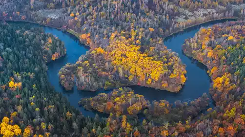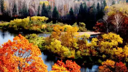 Arrive at the Kulbin Reservoir in the afternoon to wait for the sunset and watch the winding shoreline of the reservoir intertwined with the layered autumn forests. Tourists with drones will be able to unlock the magnificent vastness and boundless autumn colors of the Lesser Khingan Mountains from an aerial perspective.