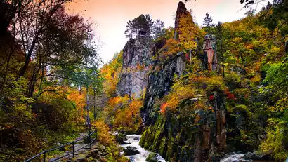 In the afternoon, explore the Tangwang River Forest and Strange Stone Scenic Area for a spectacular photojournalistic journey. This scenic spot features a stunning combination of granite rock formations and pristine forest. We recommend ascending to the observation tower for a panoramic view: jagged rocks are submerged in a boundless sea of autumnal trees (a prime spot for aerial photography). Then, follow the forest trail deeper, capturing close-up shots of the moss-covered rock peaks, falling colorful leaves, and red pines.