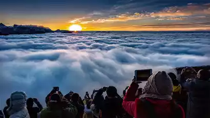 Depart around 4:00-5:00 (subject to notification from the staff, and the departure time may be earlier depending on the season/holidays/peak traffic periods, as notified by the scenic area). Take a tourist bus from your accommodation to the entrance of Dawa Gengzha Scenic Area, then queue up to take a sightseeing bus into the scenic area. Get off and hike (about 30 minutes) to the top of the mountain to watch the sunrise and the sea of clouds, while admiring the Tongtian Road under the starry sky. If the weather is good, every shot will be a masterpiece.