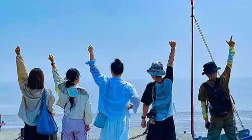 Arrive at [Tiaozini], a scenic spot located on the coast of Dongtai, Yancheng. It is named after its strip-shaped harbor. It is the first World Natural Heritage Site in Jiangsu and the fourteenth in China, filling the gap in China's coastal wetland World Natural Heritage.