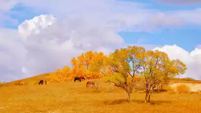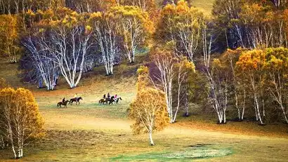 After breakfast at the hotel, join the team for an in-depth exploration of the autumn scenery of Wulan Butong. Drive to Panlong Gorge on the lower reaches of the Xilamulun River, where you'll experience horseback riding on the grasslands (at your own expense). Under the guidance and guidance of a horseman, you'll deeply experience the pleasure of riding outdoors. (Carefully read the China-TravelNote Horseback Riding Guide and always pay attention to safety when riding.) Those who prefer not to ride can opt for a vantage point to admire the winding river in the canyon, towering birch trees, and the hilly grasslands of Bashang. Afterward, we'll visit Princess Lake, also known as "Blue Siegger's Tears." With its birch forests and small cabins, it evokes a Nordic atmosphere. Under a blue sky and white clouds, the autumn colors are tranquil and beautiful. Here, we'll enjoy a wonderful equestrian performance.