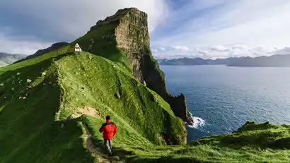 Weather permitting, we'll hike along winding mountain paths, climbing gentle slopes and valleys to reach the tranquil town of Saksun. Along the way, we'll overlook the turquoise lagoon and towering cliffs, immersing ourselves in the untouched beauty of the Faroe Islands.