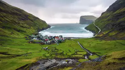 Depart from Eiði and head to the small town of Tjørnuvík, hidden deep in the fjord. It is famous for its black sand beaches and magnificent sea cliffs.
