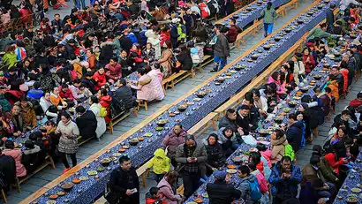 Experience the vibrant New Year's atmosphere in Xiangxi here. Join the enthusiastic locals in watching the spectacular dragon parade and the charming lantern festival, brimming with traditional Chinese charm, and soak in the rich festive atmosphere and auspicious spirit. Hundreds of Tujia people gather around the bonfire in the Baishou Hall, performing the "Baishou Dance" in unison. Join them and let go of the year's worries with this joyful dance! In the evening, wander freely around Furong Town, enjoying the festive atmosphere. Don't forget to savor a bowl of Liu Xiaoqing's signature rice tofu, as well as other local delicacies like hot sweet wine, sugar figurine paintings, and stir-fried candies.