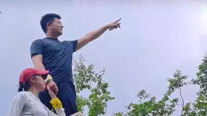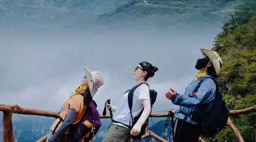 Around 10:30, we started hiking along the international Shuangling hiking route - the Ant Ladder. The wooden plank road rose all the way, with many steps.