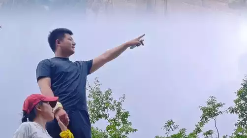 Around 16:30, we went down to the entrance of Tianjie Mountain and admired the Zhanggou Feiyun Bridge Waterfall