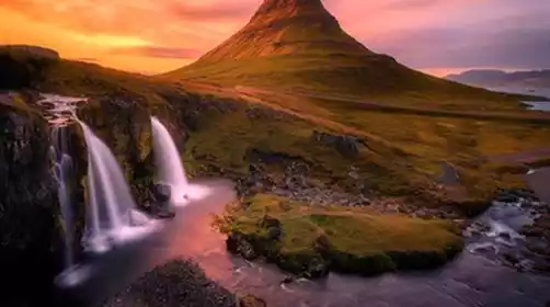 We'll explore the island's black sand beaches, framed by basalt cliffs, before visiting Kirkjufell (also known as the Straw Hat Mountain). This unique mountain is a defining feature of Iceland's natural landscape, perfect for hiking and photography, allowing you to experience the peninsula's geological wonders up close.