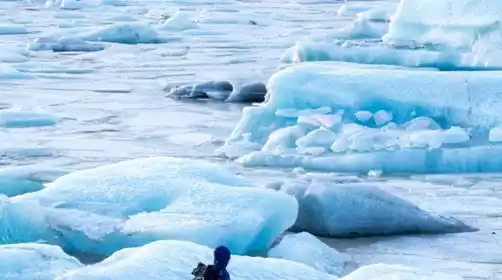 Along the way, we'll admire the unique geological landscape of southeast Iceland, stopping at Heinabergsjökull, a typical frontal glacier. The glacier's terminus connects to Heinabergsjökull lagoon, where icebergs and blue-and-white icebergs from the glacier float on its surface, creating a dreamlike world of ice and snow. We'll stop at a viewpoint near the glacier to immerse ourselves in this magnificent natural spectacle.