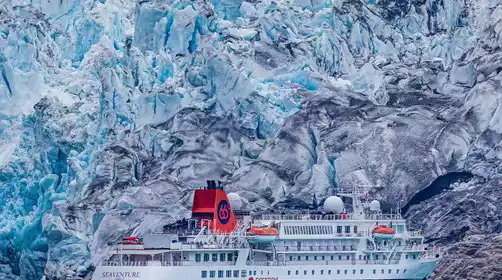 In the morning, we'll disembark and board a bus to visit Vatnajökull National Park, home to Europe's largest glacier, which covers approximately 8% of Iceland's total area. The sheer majesty and splendor of this glacier make it a truly breathtaking experience not to be missed on any Iceland trip.
