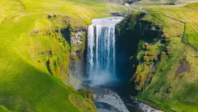 Skogafoss is about 25 meters wide and has a vertical drop of 60 meters. The strong water flow often produces rainbows, which is a wonder of nature.