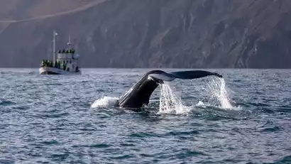 Ísafjörður, which means "Ice Fjord" in Icelandic, is the center of the fjords in northwestern Iceland. Because the surrounding waters provide abundant food for whales, you can observe whales from the deck as they gracefully leap from the water or raise their tails high.
