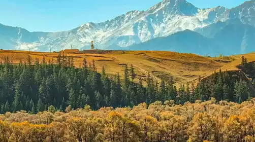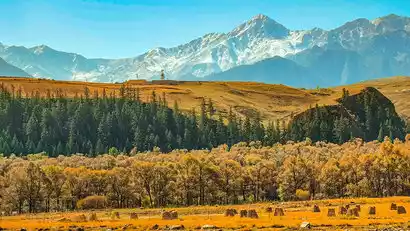 After breakfast, we'll depart for the Lenglongling Autumn Corridor, awash in autumn colors. We'll journey through an 80-mile corridor of golden poplars and birch trees, then continue along the Datong River Valley, onto the Autumn Scenic Avenue (Ganqing Highway), and enter Xianmi National Forest Park. The autumn scenery along the way will leave you breathtaking, and you'll enter the most dazzling autumn wonderland of your trip. This paradise, with its captivating autumn colors, herds of cattle and sheep, and the clear, blue Haomen River, will leave you wanting to linger.