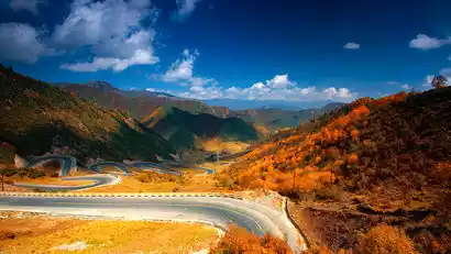 We continued our journey in the afternoon, passing the Twelve Bends of Huzhu and heading south to Huzhu, the hometown of the rainbow. We entered an autumn road and walked through the canyons full of autumn colors.