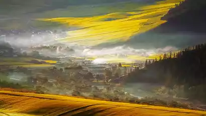 After breakfast, we'll lead you to a hidden grassland for a brief hike (approximately 3 kilometers, with almost no climbing, and taking about an hour). Deep within the grasslands, the golden autumn pastures and the distant villages create a beautiful autumn painting. Walking here feels like strolling through a painting.