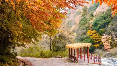 Tangjiahe is truly an overturned palette of colors. Every tree is covered in autumn colors, dazzling yellow, ardent red, and the forests are dyed in all colors, emitting the last splendor of the year.