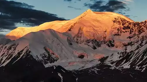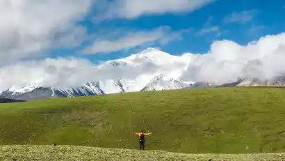After breakfast, we will set off. Today we will hike to the highest point of this trip, Damu Qiaonihe Pass, which is 4630km above sea level. After that, we will go downhill through the grassland. On the right is the Amnye Machen Peak No. 2, which is 6268km above sea level. Tonight we will camp at Muwadowa.