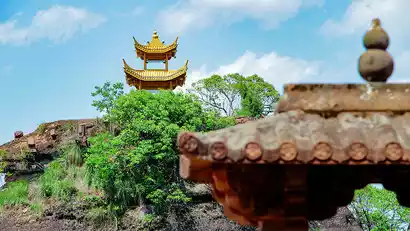 After lunch at Yuehua Tianjie, we hiked the back mountain to Fangla Village, the Danxia landform, and Ziyun Pass, where we admired Wulao Peak from afar. We then passed through Yixiantian (One Line Sky) and Yuxu Palace, looping counterclockwise back to Wangxian Tower. We then descended the mountain via the Xiake Ancient Trail, passing Dengfeng Bridge. Alternatively, you can take the cable car at your own expense (line lengths may be expected during National Day holidays). In spring, Qiyun Mountain offers rapeseed fields and in autumn, golden rice paddies.