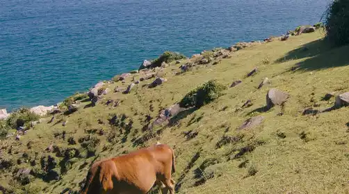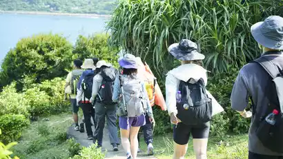 Arriving at Tap Mun Island Pier, after a free lunch, our guide led a clockwise hike around the island. The island was a vast, lush oasis, a breathtaking sight. We took refreshing, film-blue photos as we walked. Along the vast ocean, we explored the Lü-shaped stacked rocks and Tap Mun Cave, strolling along the wooden boardwalk, where cattle were everywhere. We spread a picnic blanket on the grass, shared a meal, and the sea breeze blew us away.