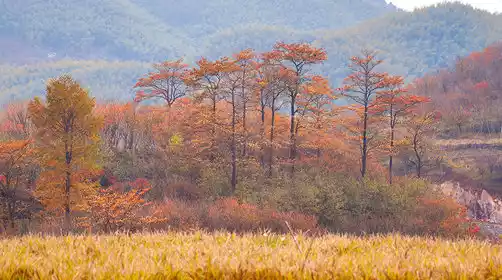 We continued our journey after lunch. The colorful autumn leaves dotted the mountains, including golden ginkgo leaves, red maple trees, and dark golden pine trees. Every shot was like a painting.