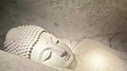 We climbed the mountain and arrived near the Xinchang Big Buddha Temple. We entered the Big Buddha Temple area, originally built in the Eastern Jin Dynasty, and home to the last surviving examples of early rock cave sculptures in southern China. Along the way, we encountered the Thousand Buddha Temple, the Reclining Buddha Hall, the Prajna Valley, the Ten Thousand Buddha Pagoda, and other Buddhist sculptures, ancient rock caves, and cascading waterfalls, all blending into one breathtakingly beautiful and exquisite route. The experience was truly enjoyable.