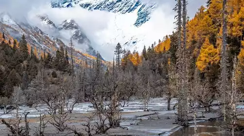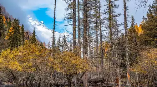 Crossing the pass and descending all the way, you can see the gorgeous autumn colors of Murzhaigou. In the canyon, there are rivers, forests, colorful trees, cattle and horses...
