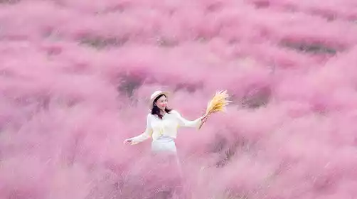 Walk in the artistic atmosphere, stroll in the sea of pink flowers, and echo with the distant mountains. Here we pose, use props and costumes, and take beautiful photos!