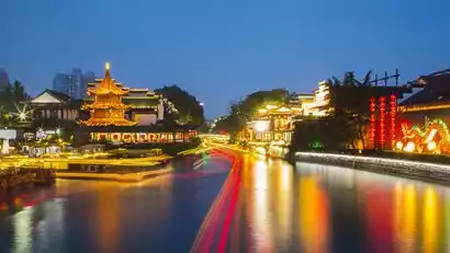 China's first historical and cultural river, the "Ten Miles of Qinhuai River" was once a microcosm of the prosperity of Jiangnan. The ancient buildings and lanterns on both sides complement each other. Photograph the reflections of the lanterns on both sides, add the outline light of the ancient buildings of Confucius Temple, and use slow shutter speed to shoot the silky effect of carriages, horses, and water dragons.