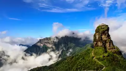 Fanjing Mountain stands out as a unique gem in Guizhou, a region rich in karst landforms. Its unique metamorphic rocks, unlike the more common limestone found in Guizhou, are so hard that the springs flowing from the mountain are clearer and offer a unique landscape. Take a shuttle bus to the cable car entrance and ascend. After the cable car, climb the steps for 30 minutes to the Mushroom Rock. You can also continue your ascent to Old Golden Summit and Red Cloud Golden Summit. Due to Fanjing Mountain's unique geographical location, with luck, you may even be able to see vast seas of clouds. It is said that those with a strong connection to Buddhism can even see the Buddha's halo at the top of the mountain.