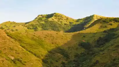 The Yanshi Golden Grassland hiking trailhead is nestled among the shallow hills of the Songshan Mountains.