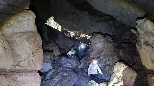 Arriving at the starting point of the activity, we started our caving trip today, going up the mountain and finding a suitable place for lunch.