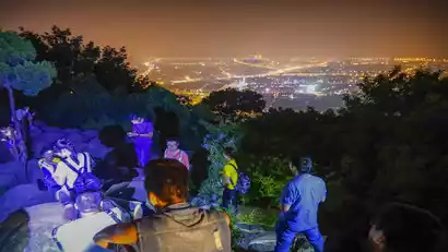 We officially set off at 7:15 PM, taking a group photo before departure. The usual easy steps became steep slopes and paths filled with wildness. We made our way to Lingyan Temple, where we rested briefly before climbing to the summit of Lingyan Mountain, where we could overlook the city at night. The dazzling lights in the darkness were a truly stunning sight.
