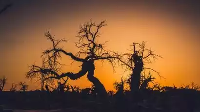 After breakfast, we'll travel west to Ejin Banner, crossing the desert highway. Along the way, we'll admire the natural beauty of the desert, sacred waters, and poplar trees. In the afternoon, we'll enter the Heicheng Ruoshui Poplar Scenic Area. We'll explore the ancient city of Heishui and admire the magnificent natural scenery along the Ruoshui River, including the Ruoshui River itself. Next, we'll journey to the Strange Forest to watch the sunset, exploring wondrous sights such as the Eagle Spreads Wings and the Strange Shadow Forest. Within the Strange Forest, a cluster of dead yet immortal poplar trees, their fangs and claws bared in the sunset, creating a bizarre and heartbreaking scene. After our enjoyable visit, we'll transfer to Dalaihub Town, the capital of Ejin Banner, for overnight stay.