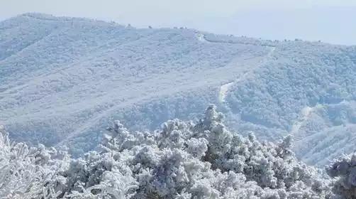 We arrived at the starting point of the hike, and after assembling as a team, we headed up the mountain, braving the snow. Along the way, we saw rime and icicles hanging in strange and colorful scenes.