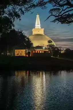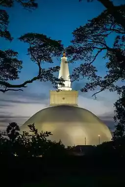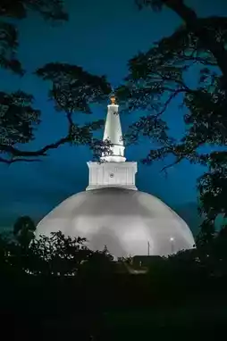 这座直径90米的半球形佛塔最初由杜图伽摩奴国王建造,用于供奉佛陀的锁骨舍利。有趣的是,这座佛塔曾经镶嵌着金箔和宝石,在阳光下反射出五彩斑斓的光芒,因此被称为“彩虹佛塔”。夜晚的遗址更加庄严肃穆,佛塔的轮廓在银河的映衬下熠熠生辉,仿佛能听到僧侣们诵读梵文经文的声音。🌳
