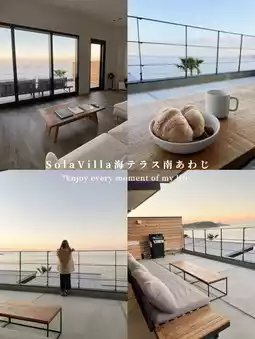 淡路岛是一个热门地区,新建的时尚别墅和酒店层出不穷。以下是我在淡路岛入住的两家别墅!两家都拥有绝佳的海景,景色美不胜收!📍海鸥慢酒店 地址:兵库县淡路市军下町大谷北1111号,邮编:656-1511 价格:每人每晚18,000日元起 🅿️提供停车位 海鸥慢酒店所有客房均可欣赏海景。我入住的是二楼的高级慢露台房,房间带有一个宽敞的露台。 (房间不带浴缸)迎宾饮品包括气泡酒和其他酒精饮料♫ 从入住到晚上11点均可点单,所以我是在黄昏时分享用的♫ 房间里有唱片,您可以从大堂借阅自己喜欢的唱片来欣赏♫ 聆听海浪声和唱片声,放松身心,真是一种享受!晚上还可以享受户外篝火♫ 早餐以野餐的形式送到房间,您可以一边欣赏海景一边在露台上享用!虽然我们这次没有使用,但酒店旁边有一个桑拿房,推荐给喜欢桑拿的客人! 📍索拉别墅海景露台(南淡路)地址:兵库县南淡路市港1131-1,邮编:656-0332 每晚:每人约24,000日元(多人入住更划算🉐) 这栋别墅适合家庭入住,可容纳多人。您还可以在海景露台上享受烧烤!日出日落景色绝美,建议下午3点入住,第二天早起🫶别墅内设有厨房,因此也推荐您像在别墅一样入住多晚。