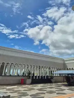 进入清真寺前,需要脱鞋并穿上长袍,或者租借一件长袍。虽然有很多外国游客,但他们都非常安静有礼,正因如此,我才能充分感受到清真寺内庄严肃穆的氛围。清真寺内部更是富丽堂皇,整洁有序。大理石地板、悬挂在天花板上的大型吊灯以及精雕细琢的墙面装饰都令人叹为观止。伊斯兰建筑特有的对称性和图案设计令人印象深刻,我能感受到这处宗教场所所蕴含的艺术之美。