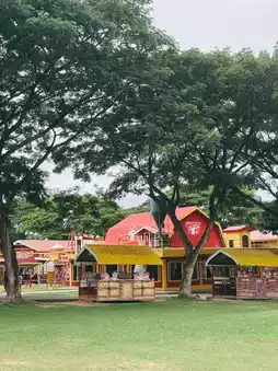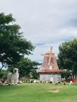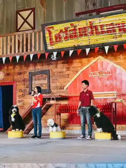 农场环境优美,设计精良,有一些木屋和一个休息区,你可以在那里坐下来享用冰淇淋或当地小吃(比如泰式芒果糯米饭和烤玉米!🍦🌽🍚)。这里还有一些儿童游乐设施,比如滑梯和秋千。🎡🚀🎈 这里空气清新,远离城市的喧嚣,非常适合家庭休闲娱乐,情侣来散步也很棒。🏞️💑