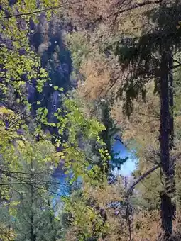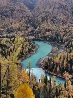 从月湾到卧龙湾的徒步路线是喀纳斯河的精髓✨沿着木栈道漫步,喀纳斯河蜿蜒流淌,宛如一条翡翠丝带💎从观景台上眺望,月湾标志性的S形河道景色壮丽无比📸沿途,您将欣赏到最美的秋日倒影——蓝天、白云、色彩斑斓的森林倒映在清澈的河水中,美得令人窒息!徒步前往卧龙湾,您会看到河湾处的沙洲形似一条盘绕的巨龙🐉这条龙的形状栩栩如生!
