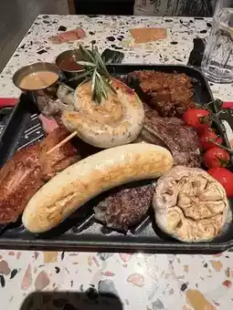 我点了一份肉拼盘,里面有螺旋香肠、鲜嫩的牛排和香脆的烤鸡……搭配两种酱料,每一口都美味无比🤤!精酿啤酒是这里的灵魂——麦芽的香气在舌尖迸发,醇厚而清爽。坐在吧台边,欣赏调酒师娴熟的技艺,啜饮一口美酒,工作的疲惫瞬间消散~