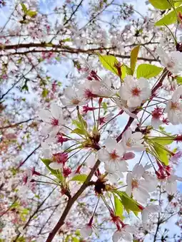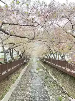 汝矣川两岸的樱花树倒映在清澈的溪水中,