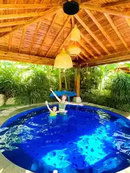 💦 **户外温泉**:从成都过来可不是一趟短途旅行😭,但我们放下行李就直奔温泉——色彩鲜艳,户外天气凉爽🧊。出乎意料地放松!