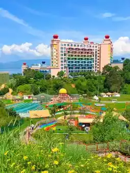 **第一天**:入住海豚湾酒店 🐬 → 露天温泉 → 马戏团 → 抚仙湖嘉年华之夜