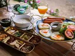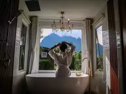降临,酒店会在房间门口供应涮涮锅。您可以一边欣赏清道山的美景和日落,一边享用美食。真是太惬意了!:) 早餐我们提供米粥套餐和美式早餐,包括水果、橙汁、茶、咖啡和酸奶。