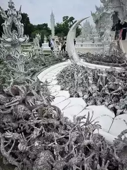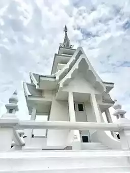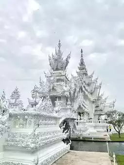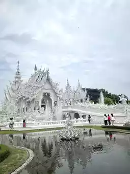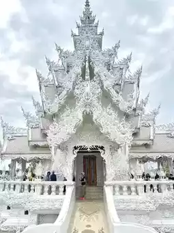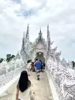 白庙位于泰国北部清莱府。从清迈开车到清莱大约需要三个小时,路途较远。近距离观赏白庙,你会发现它气势恢宏,建筑精美绝伦。其中最独特的是洗手间,它竟然是一座金碧辉煌的建筑!据导游介绍,白庙并非用于祭祀神灵,而更像是一座艺术殿堂。不过,如果你想进入庙内,仍然需要脱鞋。