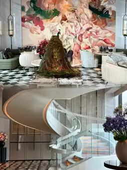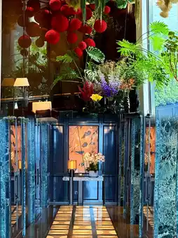 - 由CCD设计的公共区域:日夜皆宜的拍照下客区;一楼设有花卉熊雕塑的休息室;翡翠主题的电梯厅。-