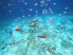 周围海水清澈见底,拥有生机勃勃的珊瑚礁和五彩缤纷的热带鱼,是浮潜和潜水的理想场所。维护良好的白色沙滩是放松身心的完美之选。