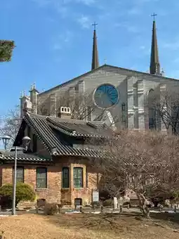 位于大邱广域市中区东山洞的青罗山,得名于20世纪初,当时基督教传教士在此居住并种植了大量的金银花。山上的三座西式房屋——查姆尼斯楼、布莱尔楼和斯威特斯楼——是基督教早期传教士在大邱的住所,至今仍保留着当时在韩美国人的建筑风格和居住习惯。这里还有一个以大邱第一教堂为背景的拍照区,在社交媒体上非常受欢迎。拍照区内有一棵玉兰树,春天来访,玉兰盛开时节,景色更加迷人,是拍照的绝佳时机!